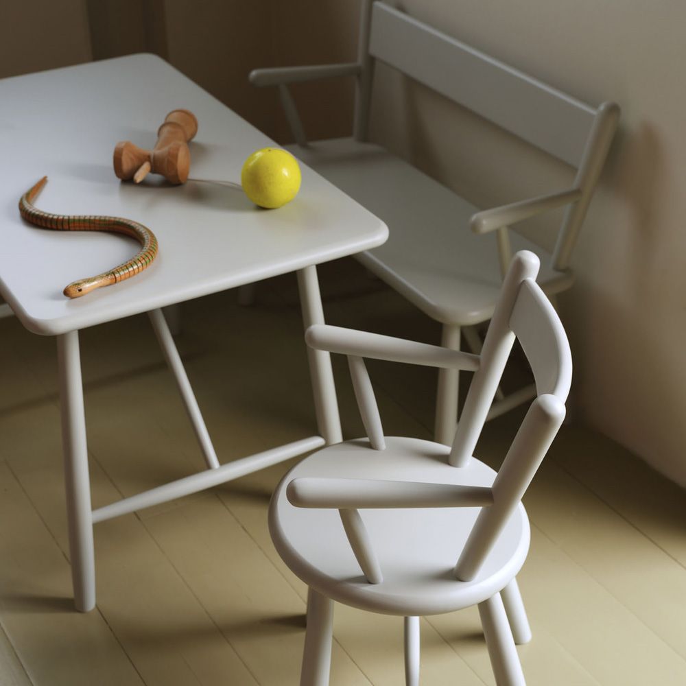 Allsidige bord med vanger på sidene og tilhørende benker.