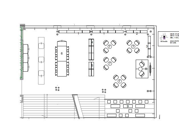 Øvrig inventar: Scene, gulvtepper fra Desso/Tarkett