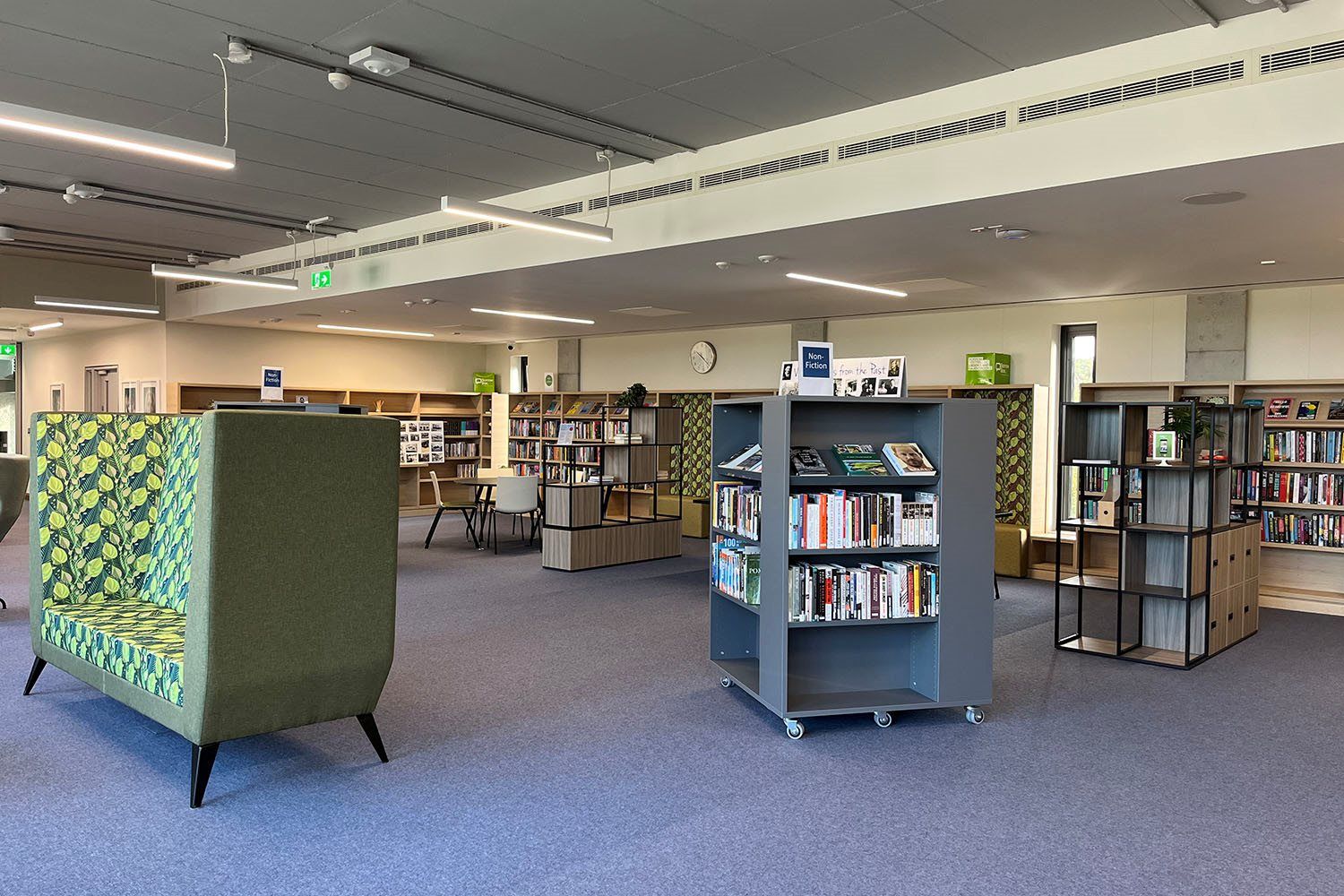 De betydelig større lokalene ga mulighet til å utvikle et forbedret og spennende tilbud for lokalsamfunnet. Den skreddersydde utformingen av det nye biblioteket inkluderer et dedikert barneområde i første etasje sammen med en sone for ungdom i voksenbiblioteket i etasjen over. Antall sitteplasser er også betydelig økt, noe som gir brukerne av disse lyse og trivelige biblioteklokalene en rekke muligheter for avslapning, lesing og sosialt samvær.