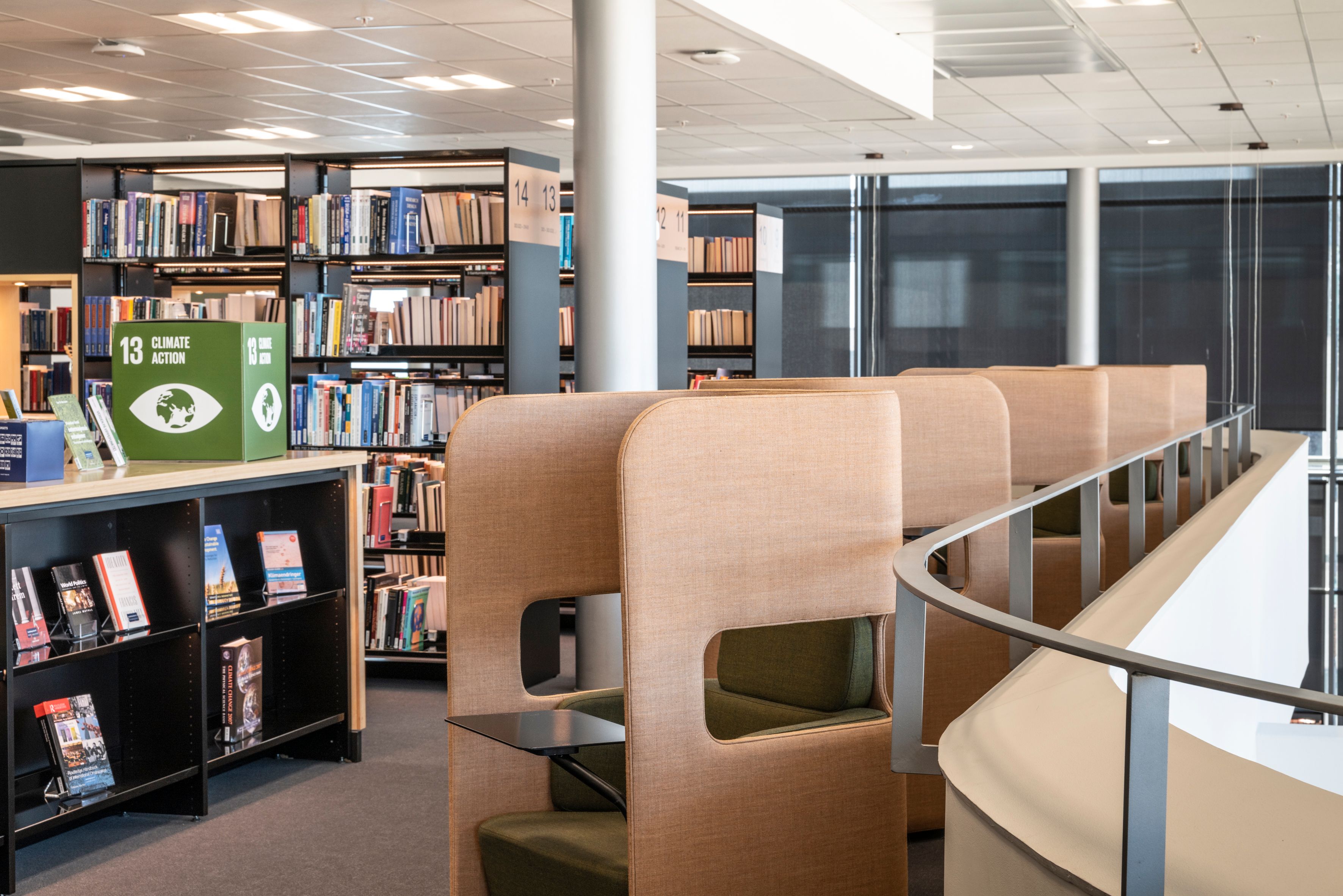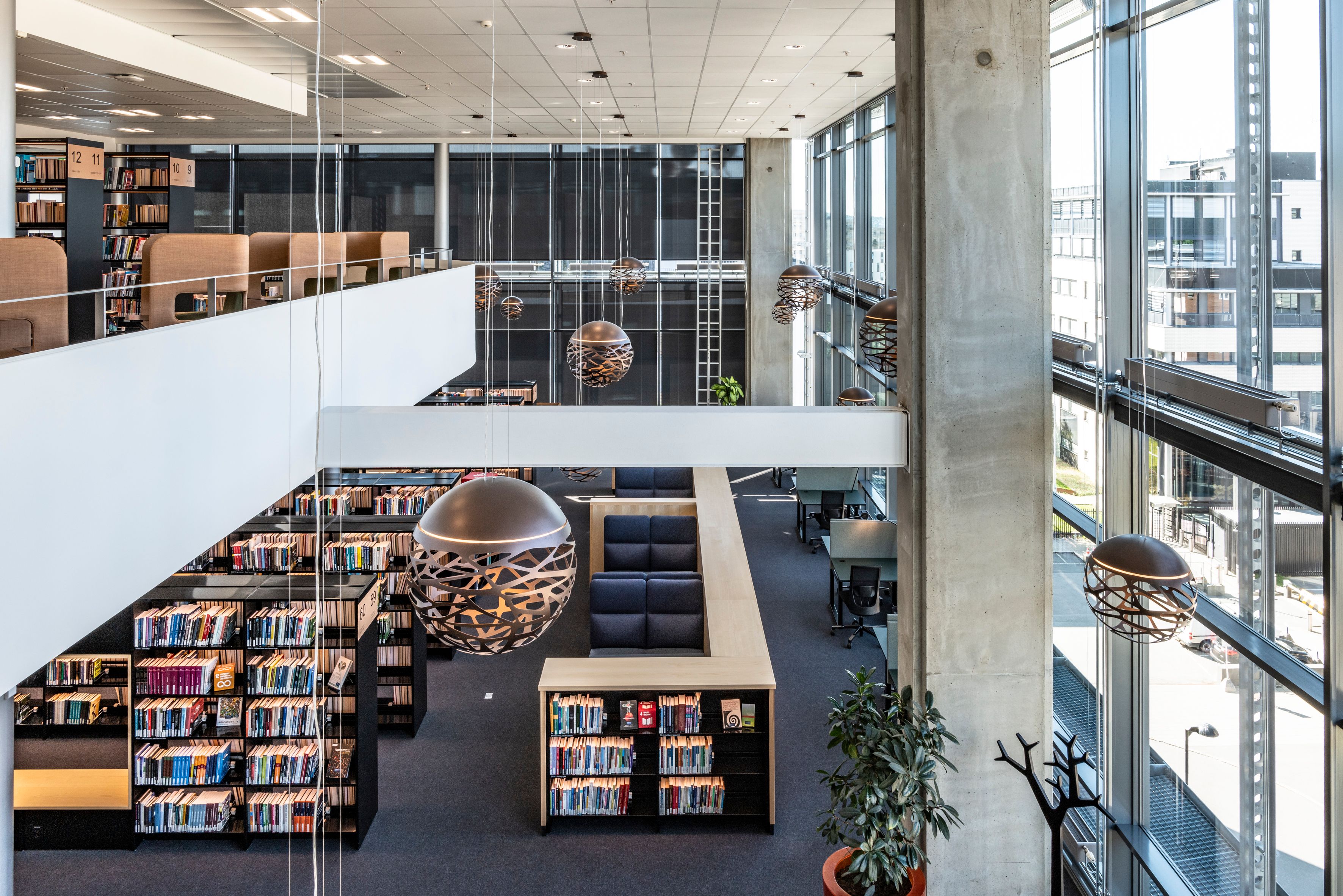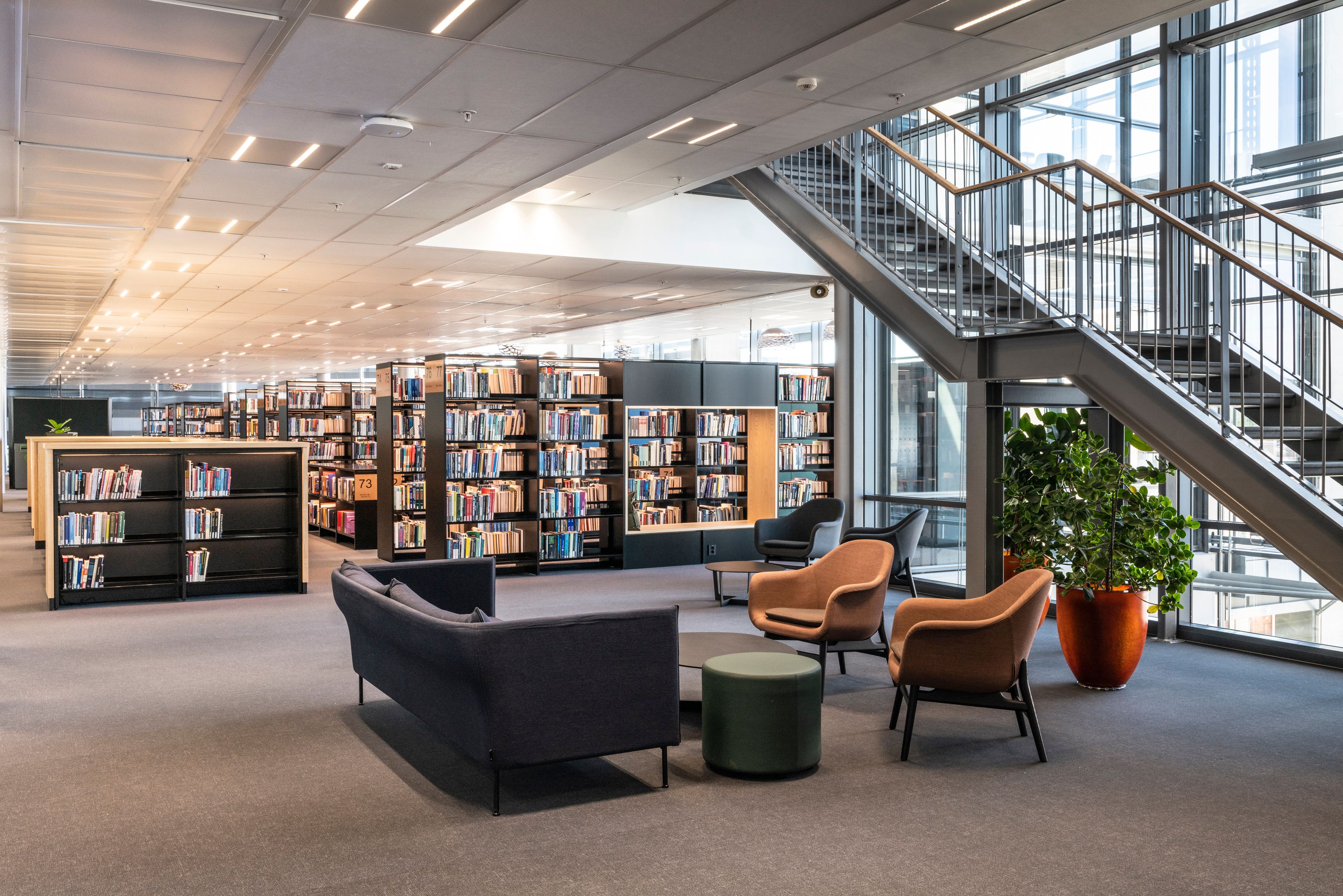 Resultatet har blitt et storslått bibliotek, fordelt over to plan i 5. og 6. etasje med varme, nordiskinspirerte farger. Lokalenes utforming med delvis generøs takhøyde samt massivt lysinnslipp gjennom dobbelthøye glassvegger, gir et godt utgangspunkt for oppnåelse av bibliotekets mange funksjoner.