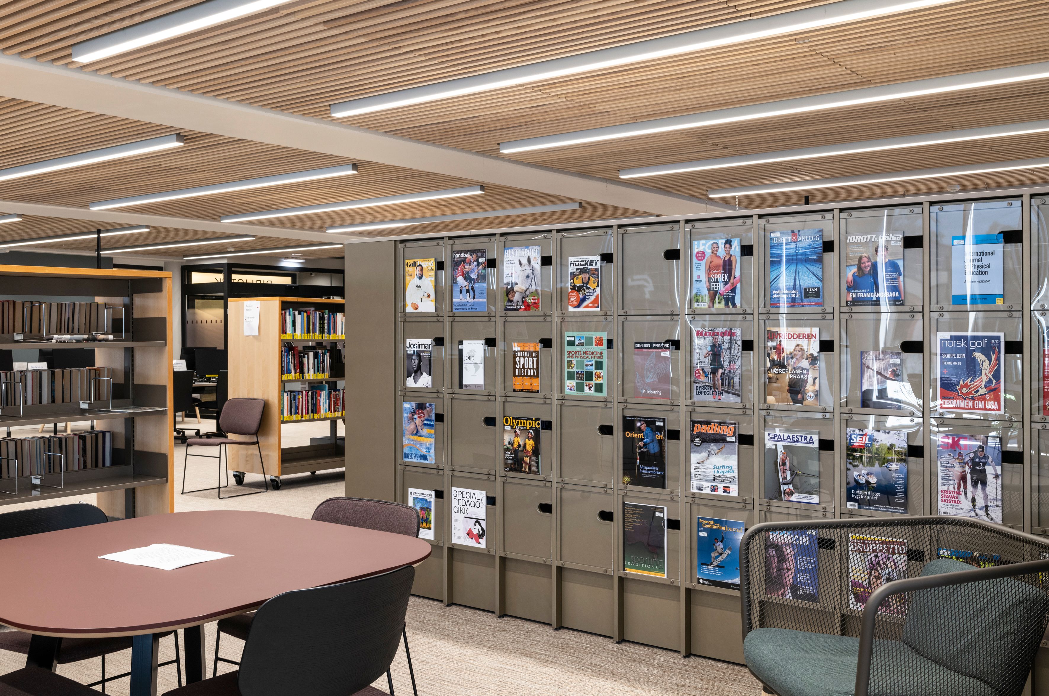 I 2019 leverte vi stålreoler type BCI 60/30, og i 2021 fikk vi gleden av, i samarbeid med vår forhandler Input interiør Norge, å supplere biblioteket med flere bokreoler av samme type. I tillegg leverte vi tidsskriftsreoler type Ordrup, malt i samme gråfarge som stålreolene.