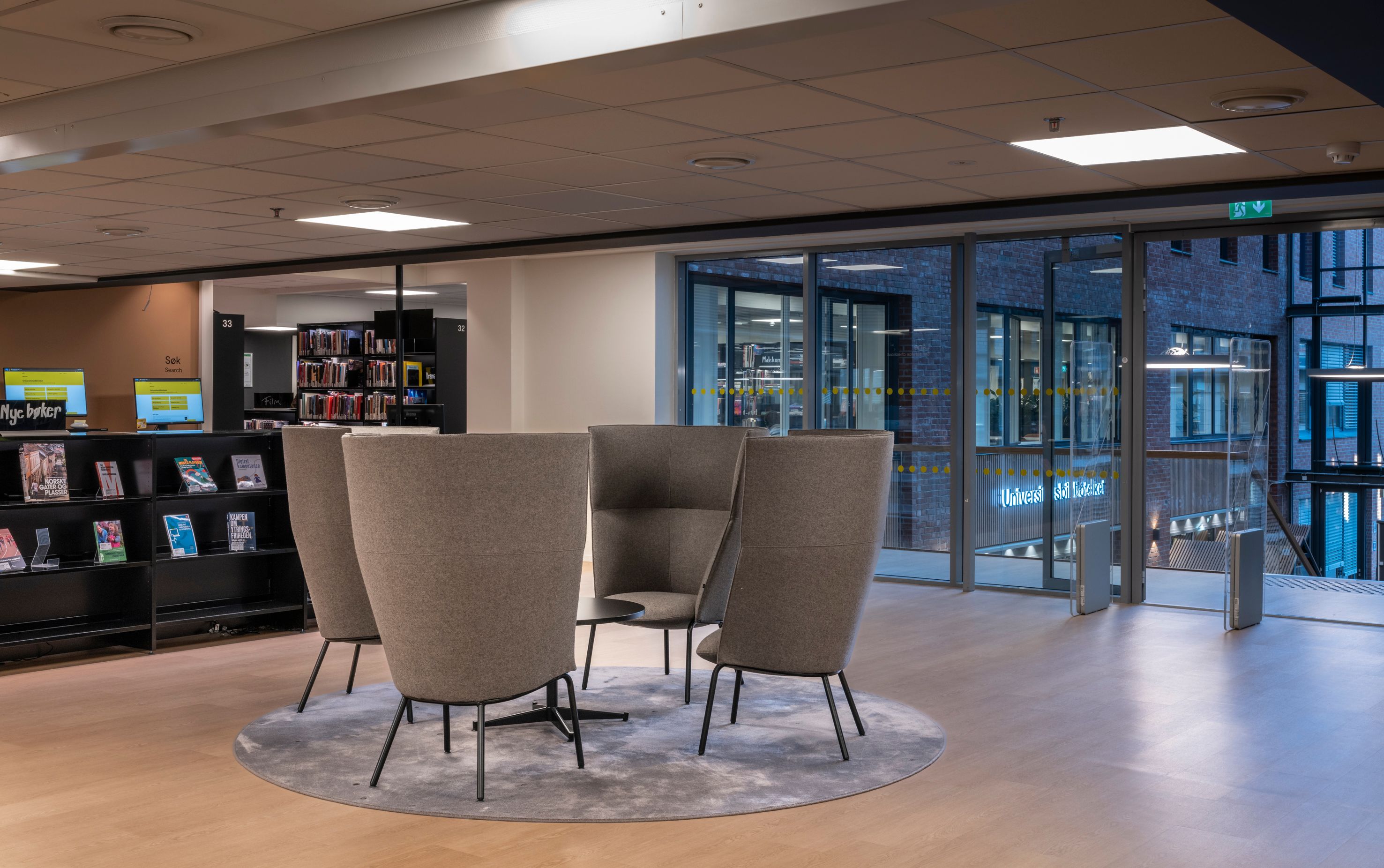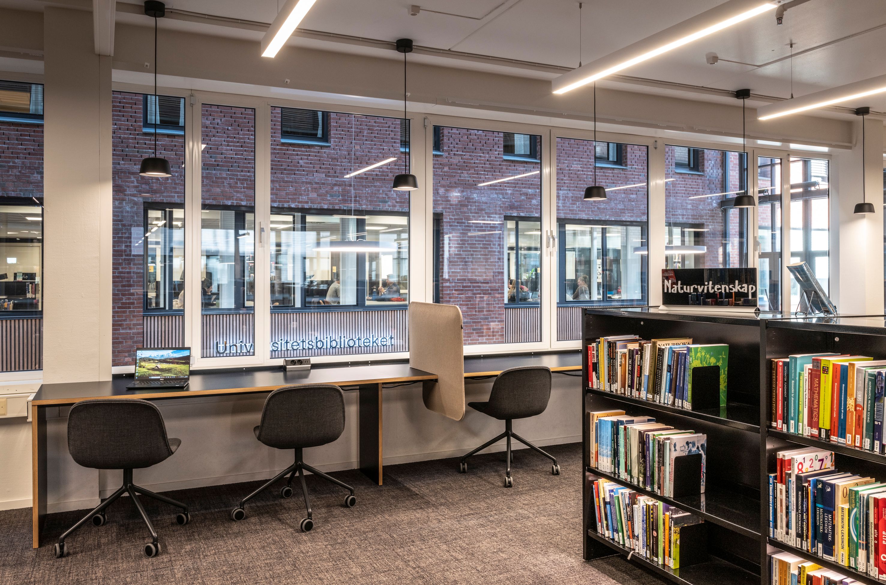 Lekkert universitetsbibliotek på Campus Pilestredet