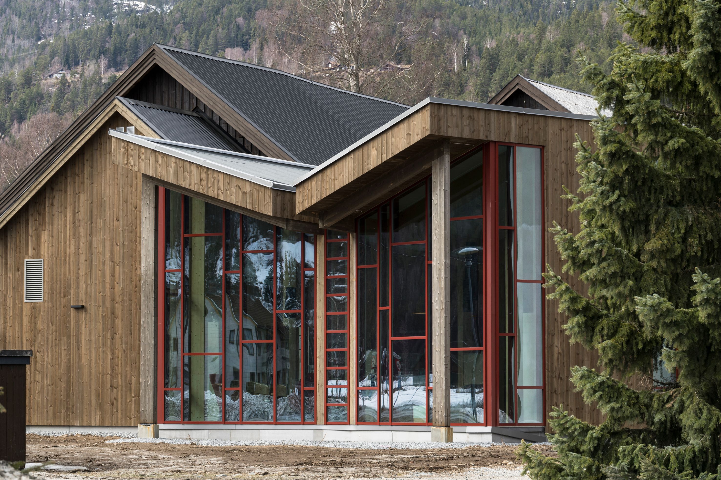 Dette majestetiske og imponerende biblioteket i Nord-Odal i Norge tar utgangspunkt i et naturlig trelandskap med treets organiske former og myke kurver som den dominerende faktoren.
