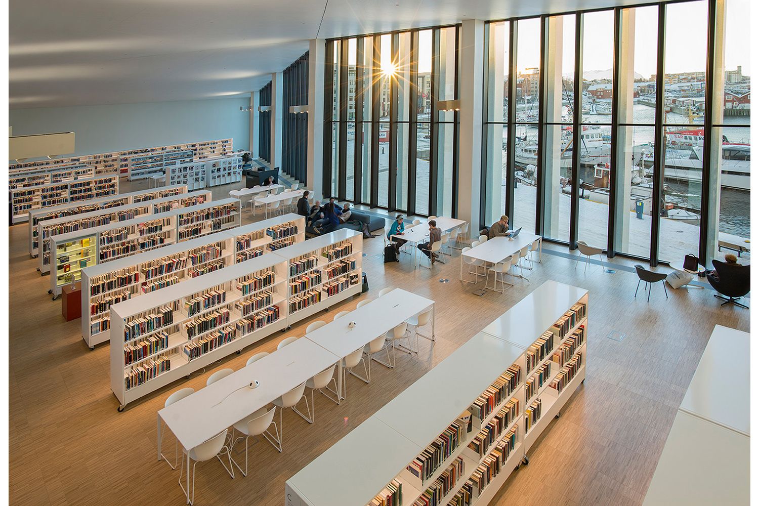 Det nye biblioteket har blitt et praktbygg beliggende i byhagen med nærhet til sjøen.
