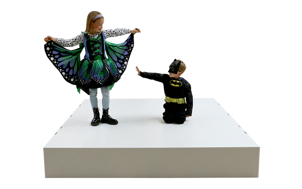 Even kan enkelt veksle mellom å være en scene og et sittepodium i tre ulike høyder. Med sin solide konstruksjon er den ideell for bibliotek, kulturinstitusjoner og utdanningsmiljøer for både barn og voksne. Romslig oppbevaringsplass bak sitteplassene gir plass til puter, spill, bøker og leker. Barn kan kose seg med lesing, spill og lek, eller delta i teaterforestillinger på scenen.