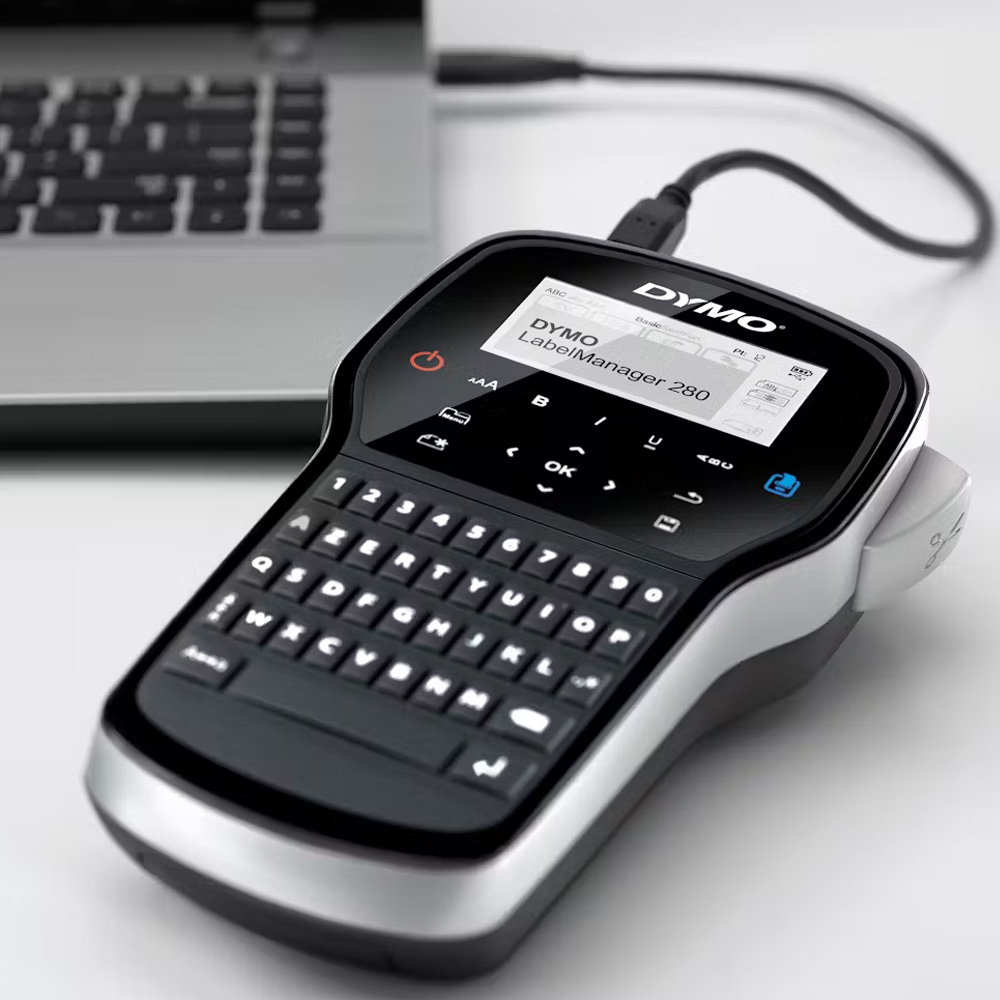 Dymo 280 kan anvendes med D1 tape med bredde 9 og 12 mm.