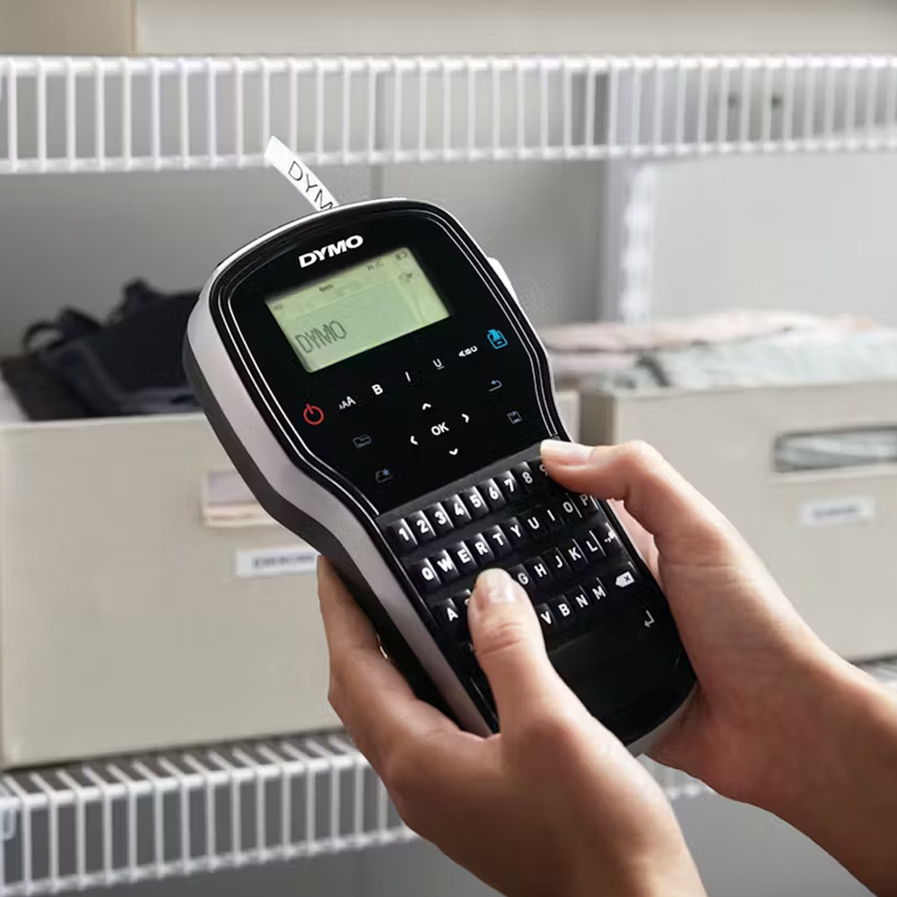 Merkemaskin til rask og profesjonell utskrift av etiketter. Bruk maskinen manuelt eller koble til PC eller Mac med medfølgende USB kabel for å redigere og designe etiketter via Dymo Label Software.